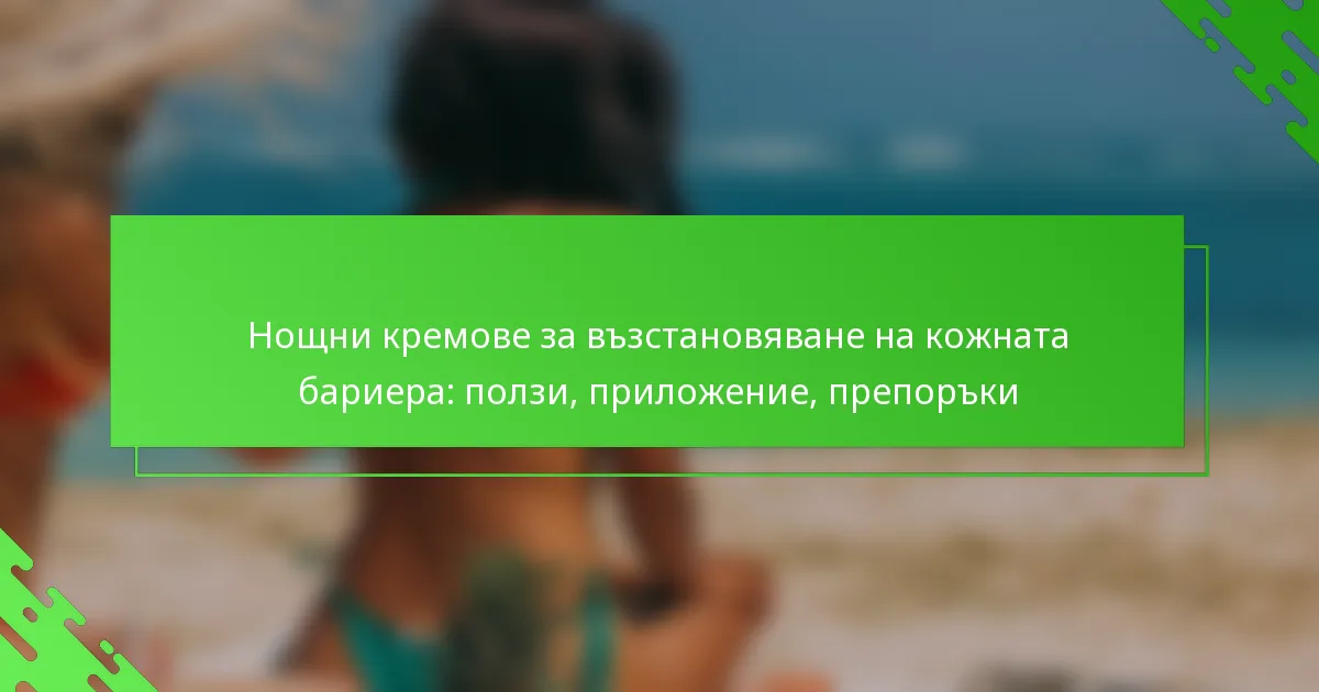Нощните кремове, които ефективно подпомагат възстановяването на кожната бариера, често включват съставки като керамиди, хиалуронова киселина и мастни киселини. Керамидите помагат за възстановяване на естествената липидна бариера на кожата, предотвратявайки загубата на влага и увеличавайки общата хидратация. Хиалуроновата киселина привлича влага в кожата, осигурявайки пълно и еластично изглеждане.